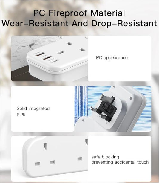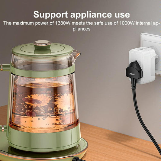 Yesido MC15 Power Extension, 4 UK Ports Extending, Splitter AC Multi-socket Smart Power Socket Hub, USB PD QC Fast Charging, 3250W Max Output, White