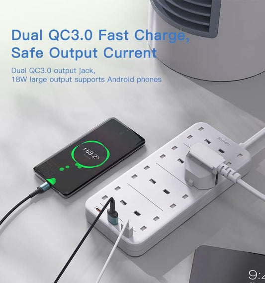 Yesido MC-11 4 Plugs + PD 20W+2 QC3.0 Ports 2650W Multi-functional High Power Socket