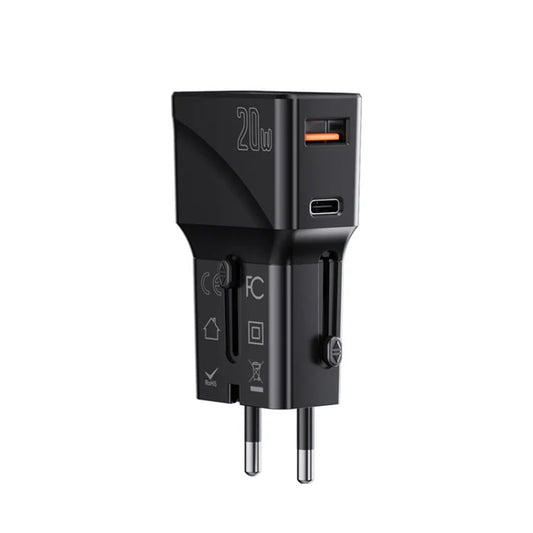 Yesido MC-17 QC3.0 + PD 20W Dual Port Global Universal Travel Charger(Black)