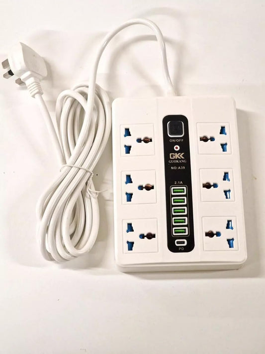 GKK 2m USB Extension Socket, 2500W Power Strip with 6 Universal Surge Protector, 2.1A PD Port with 3 5V/3.1A Five USB Ports