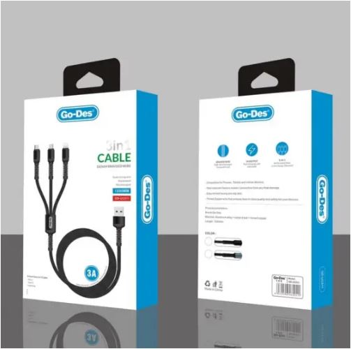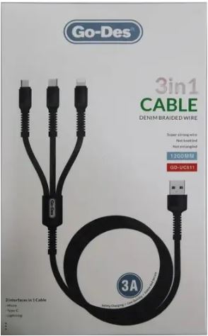 Go-Des 3in1 Quick Charging Cable (USB C, IPHONE and Micro) 3A, 1.2m UC511