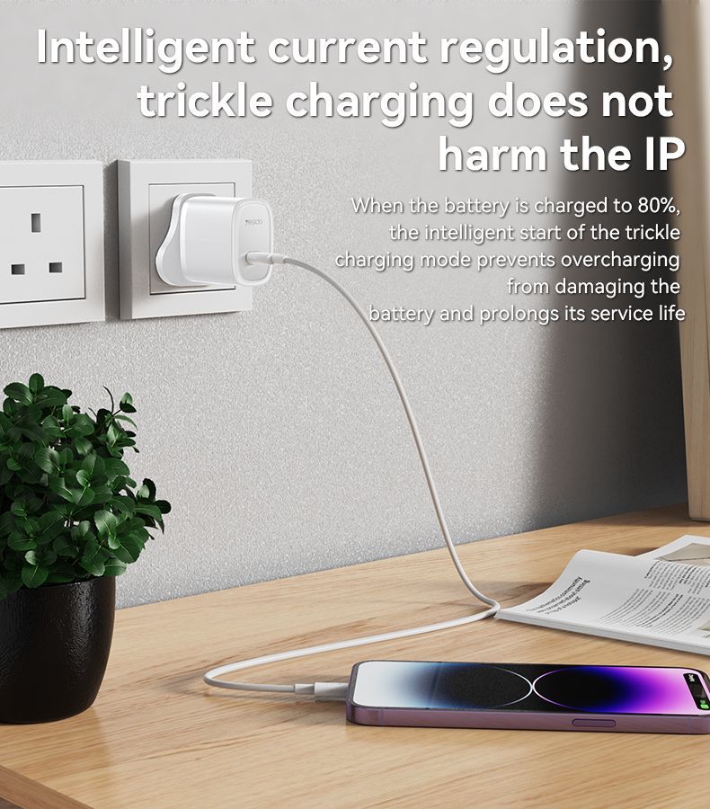 Yesido YC76C PD 20W USB-C / Type-C Port Quick Charger With Type-C To Type-C Cable, UK Plug White
