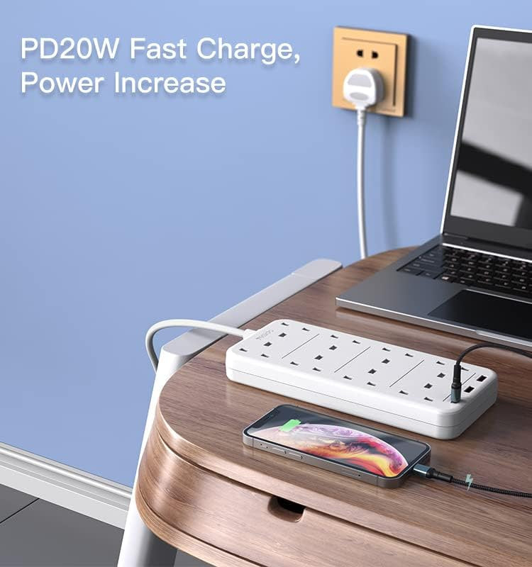 Equipped with 8 UK-style AC sockets for versatile device connectivity.